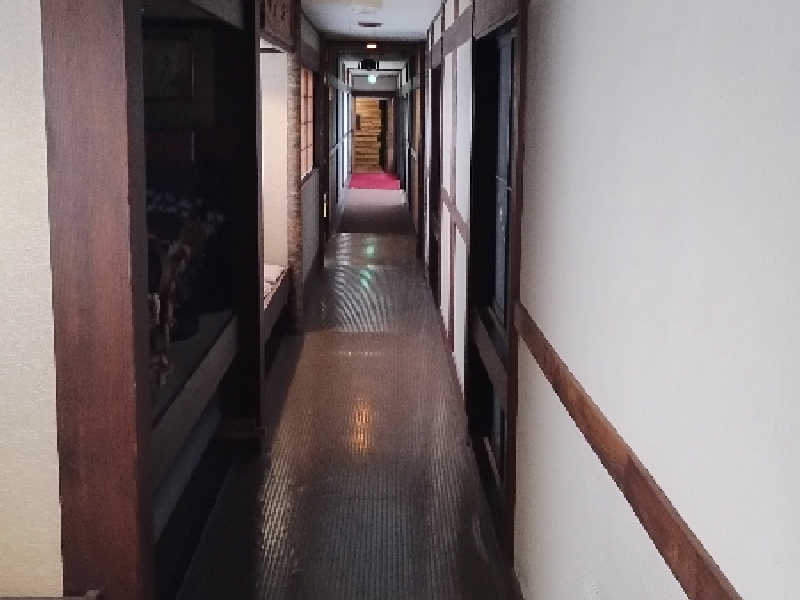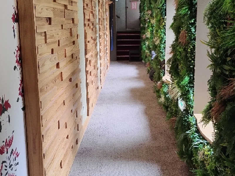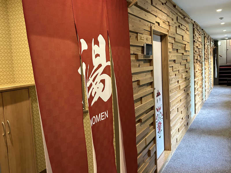 なんともレトロな内装(結構老舗)受付で日帰り入浴「うるおいの湯700円」を支払い、長い廊下を進み突き当たりからとてもおしゃれな内装の「うるおいの湯」ゾーンへ