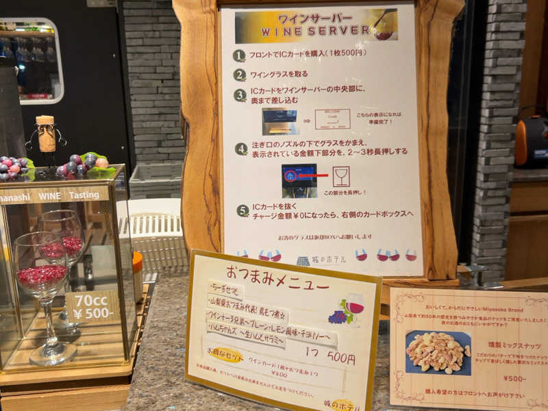 甲府旅最後の宿は「城のホテル」。駅のすぐ近くにあること、ワインのテイスティングコーナーがあること、そして温泉付大浴場があるのが決め手。