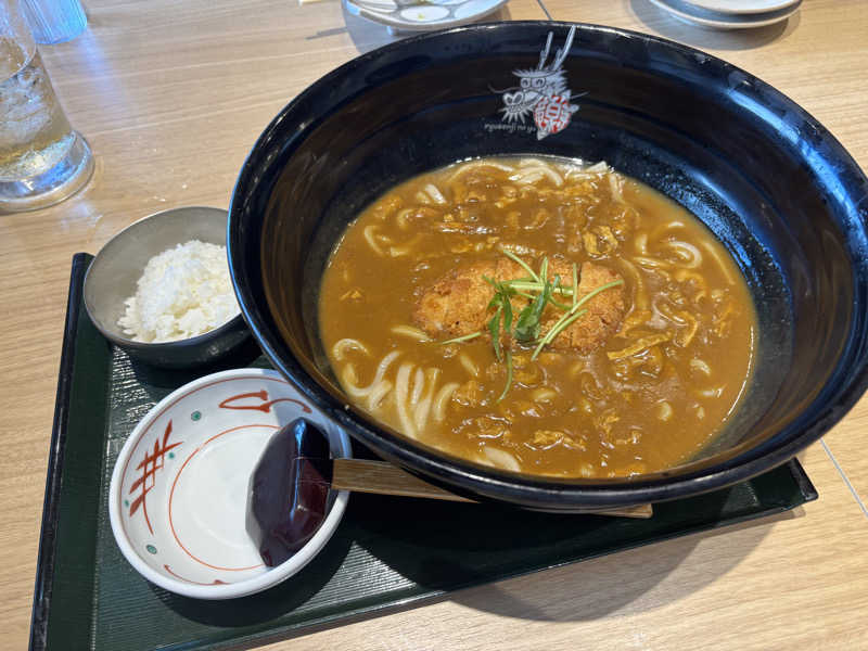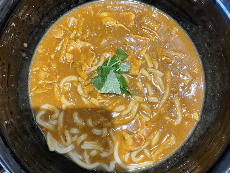 カレーうどん 辛口 麺大盛り ちくわ天トッピング 追い飯 辛口選ぶと唐辛子ペーストが入れてあるのね。