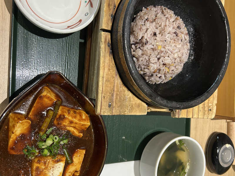石焼き麻婆豆腐辛い🥵けど、熱々ジューシーでうまい😋