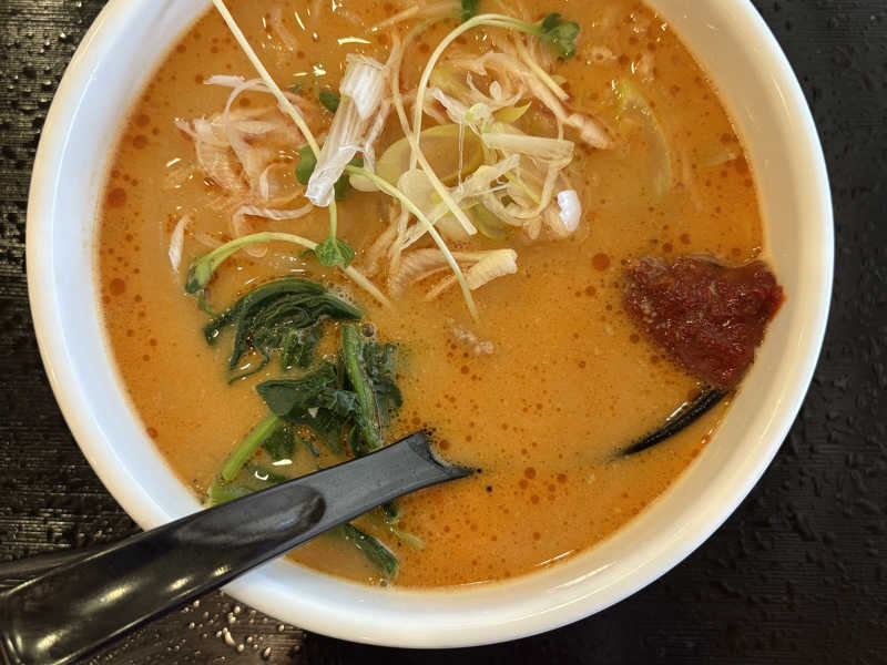 大盛にしました。辛味もしっかりしており、韓国麺、具材、タレの相性が良すぎました。味変のカラシも良し。