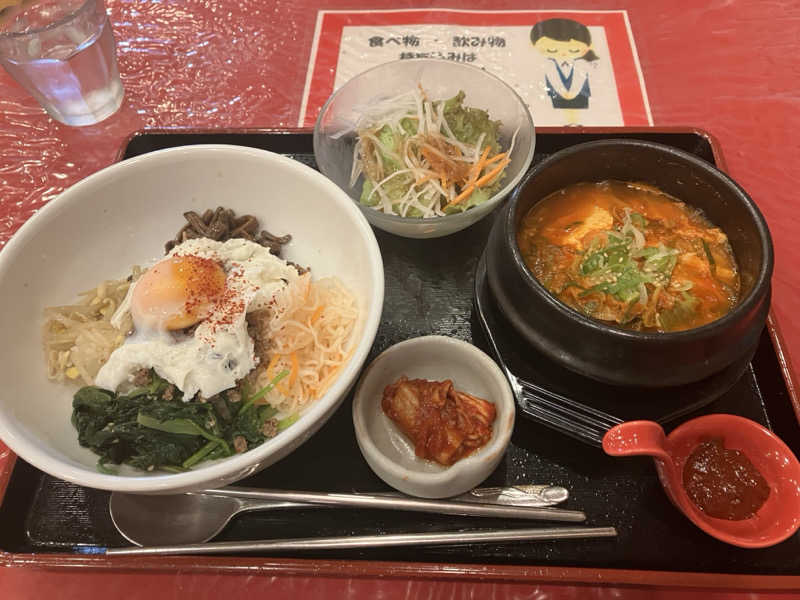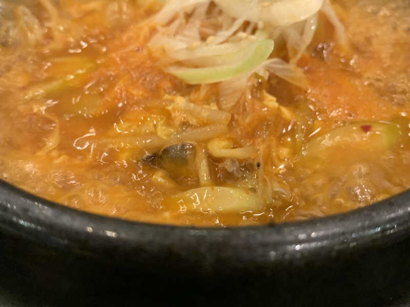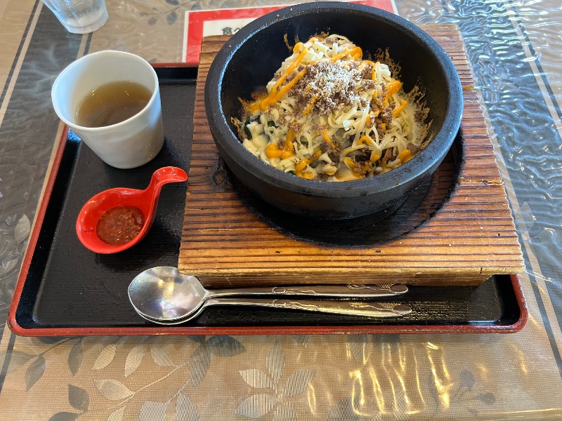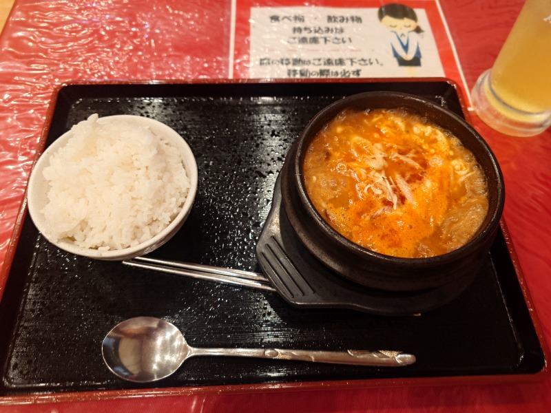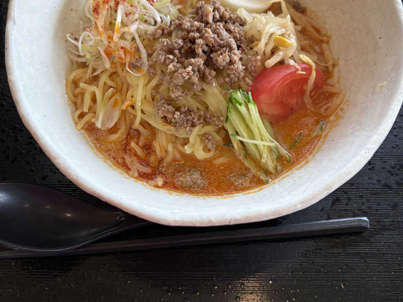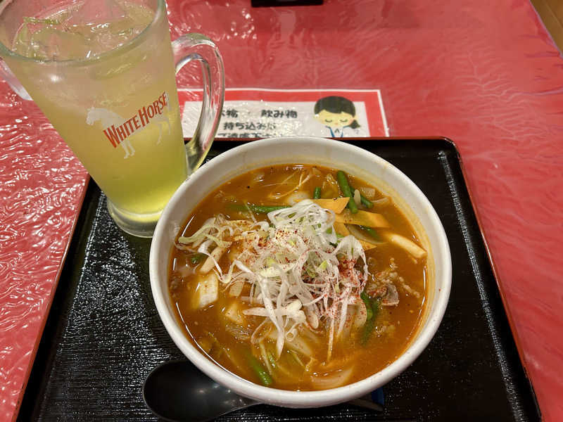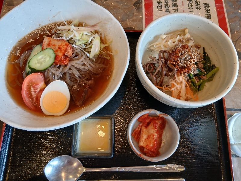 冷麺の麺と同じ麺の暖かいメニュー。具材はこの間のトラウマラーメンと一緒だったが、辛さは穏やかでした😁