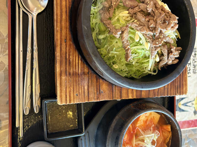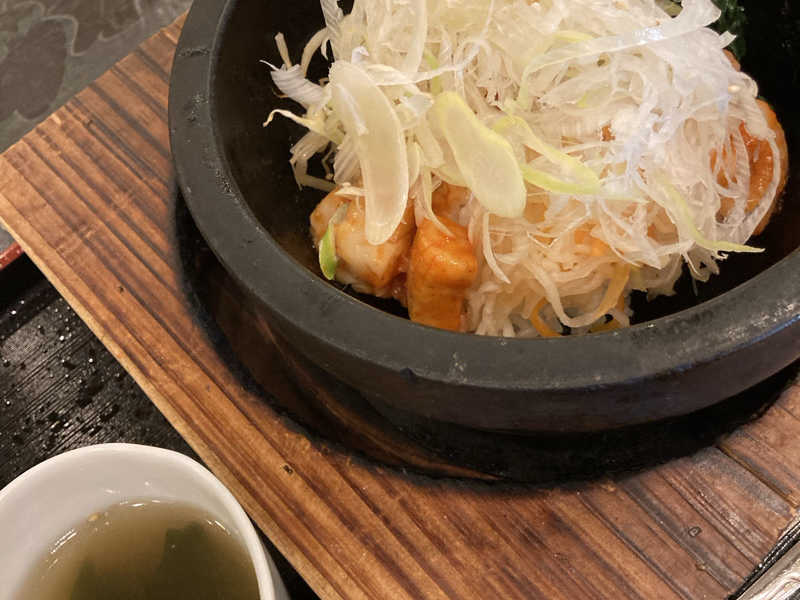 最後までアツアツ❣️ほどよい辛さでおこげも美味しい😋汗蒸幕お約束のホッキ入り。美味しかったーーー。