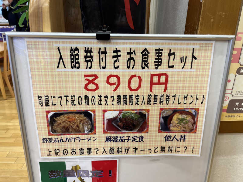 これはお得🉐毎回ラーメンと入浴で890円とは物価高のこのご時世に強い味方♪
