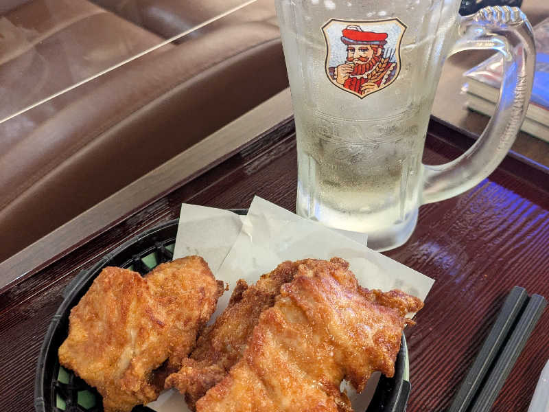 ニッカハイボールと大きな唐揚げ3個のセット安すぎ〜。キュア唐揚げ美味い〜!