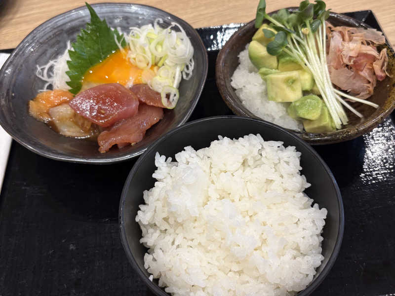 海鮮ユッケ作るの忘れられそうになった。夫氏は一部で流行りの「組み換え義務御膳」(彼の考案である)🤣