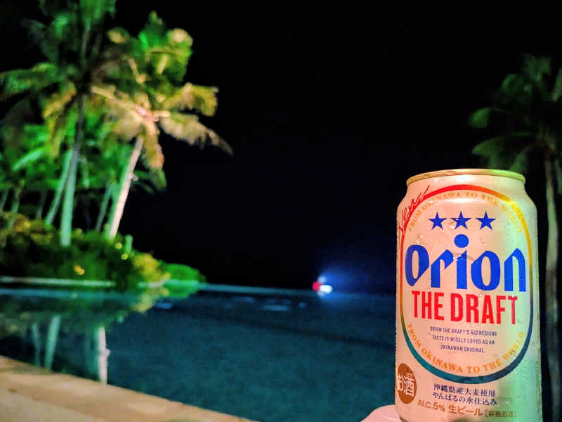 水風呂後は残念ながらととのい椅子が無いため、サクッと着替え、ショップでオリオンビールを購入し、プールサイドのチェアで寝そべることに。