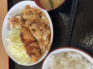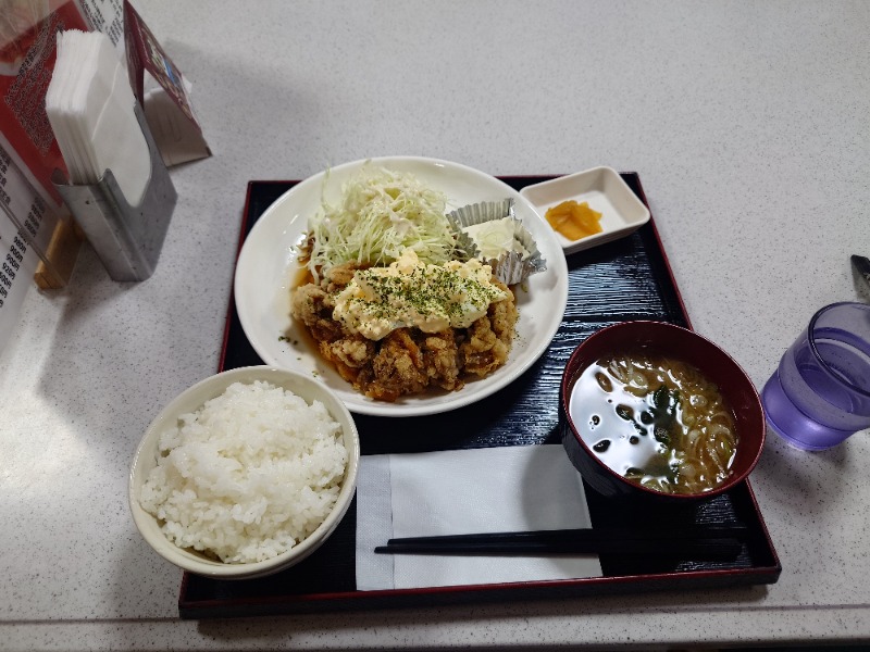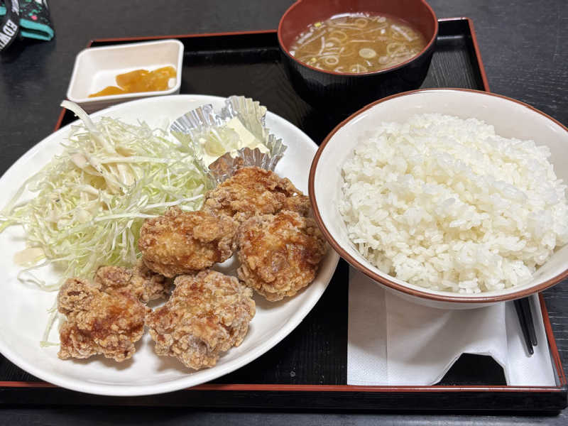子が食べた唐揚げ定食 学生は平日ライス大盛り無料! 助かるっ