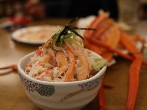 夫さんがカニ丼作ってくれた、以前登別で当然さんがカニ剥いてたヤツへのオマージュ