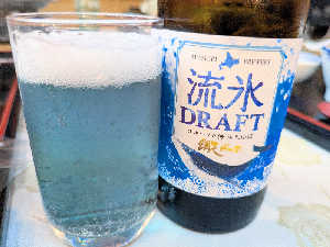 信じられないくらい青いビール(発泡酒)。夕食撮り忘れ。