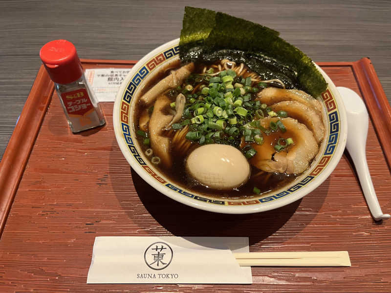 濃厚な鰹節の香りとまろやかな醤油の味わいが絶妙! 食事でサウナ1時間延長サービスも嬉しい!