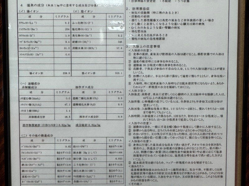 温泉は弱アルカリ性の単純温泉。少しとろっとしていて、肌触りが気持ち良い。分析表が写真撮れるところにあったのでパシャリ。ドーミーインと同じ海潮温泉の4号源泉じゃん。桂荘さんは令和7年の最新版をちゃんと掲示してくれてるんだけどな。