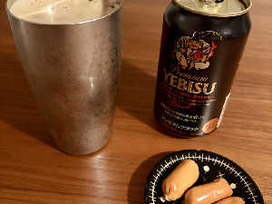 ワインが合うけど、家にワインが無いので黒で。キリンよりエビスがちょっと高い。ささやかなぜいたく。
