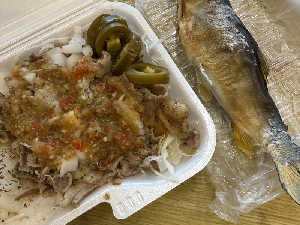 鮎がびっくりするほど大きかったです。キッチンカーのタコライスみたいなのも美味しかった!
