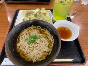舞茸天4つにオクラ天 あつあつで美味しかった😋