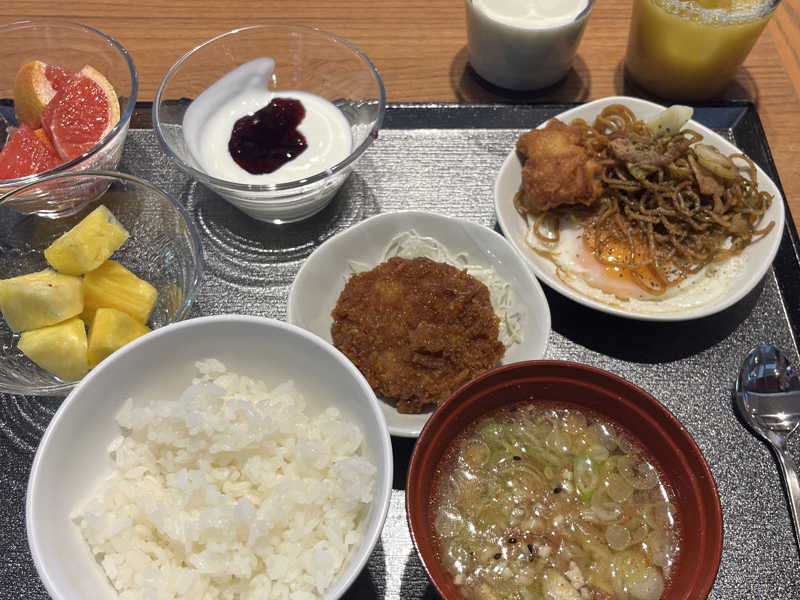 さすが新潟。お米はコシヒカリ、海老のお味噌汁、その他おかずも美味。朝からがっつりいただきます😋