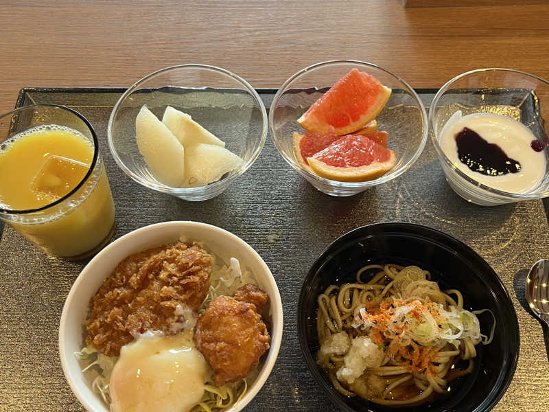 たくさんあるのでたくさん食べたくなります😋タレカツ丼、栃尾の油揚げ、南蛮海老の味噌汁🦐ふのり蕎麦など