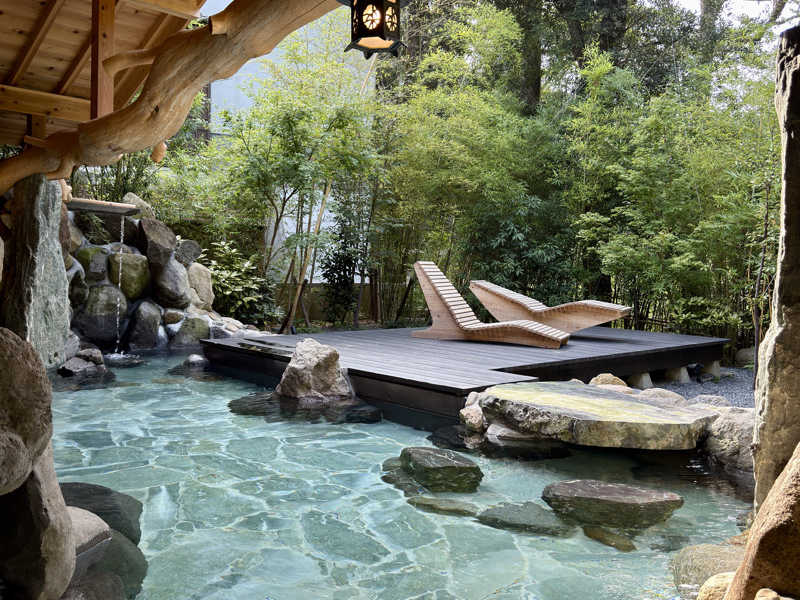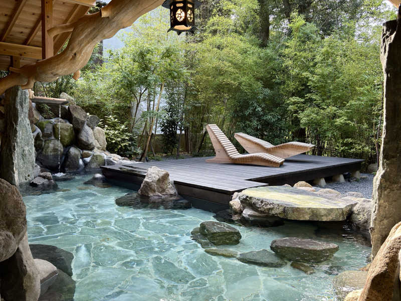外気浴スペースはどのお風呂にもちゃんとあるけど、この時期ゆっくり寛いでると蚊の餌食。蚊対策が用意してあるのは月の湯だけでした。ベープよりも蚊取り線香を焚いてくれた方が雰囲気もいいし分かりやすいと思います。