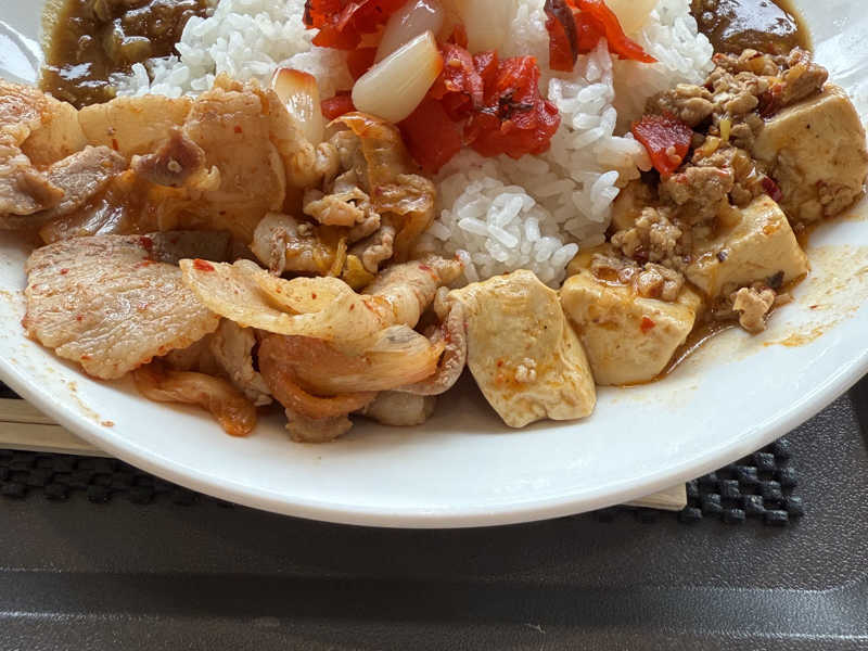 美味しいのだが、やはり人によって配置が違う。今日のはカレーに麻婆豆腐と豚キムチ乗せた感じ🍛