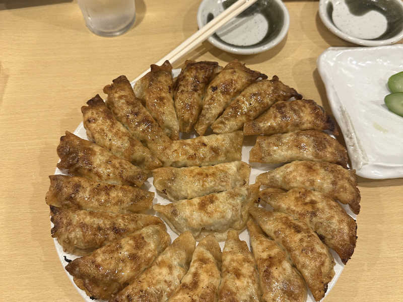 夕飯は飯塚温泉に行って円盤餃子食べました🥟