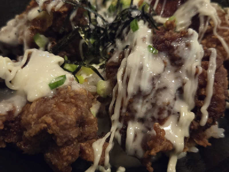やわらかくてジューシーな唐揚げに酸味があるタルタルソースを乗せて。1,030円。