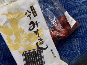 もらったミニトマトをお裾分けしたら、お返しに味噌饅頭もろた。塩気最高。サ菓子に最適!
