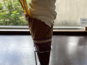 コーンがワッフル、さつまいもチップスのってる!お腹いっぱい!