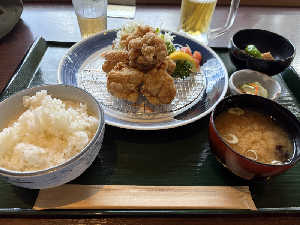 定食はドリンクバー付き。生中も冷えていてうまし。