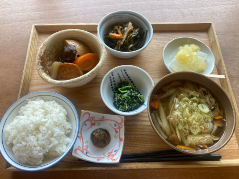 じょんのび来たら、にしかん飯までがサウナとセット💛具沢山の肉団子汁が嬉しい