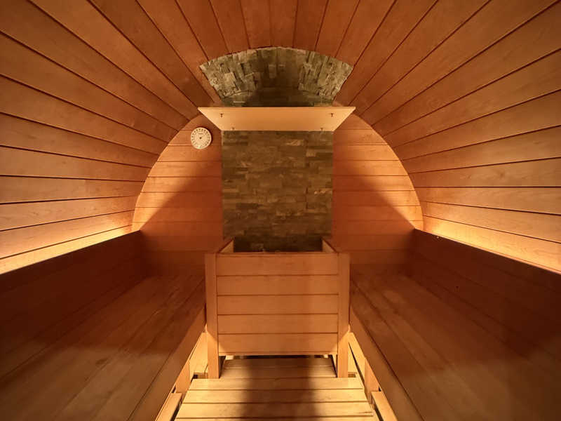 バレル特有サ室全体均等に温度を伝える事ができサウナの効果を最大限に引き出す事ができる。