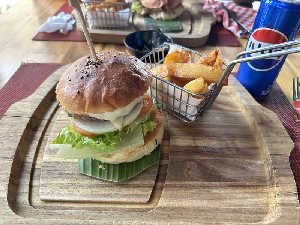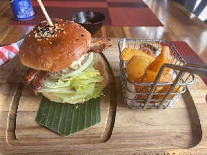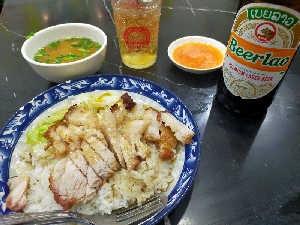 スコールが収まらず、近くの食堂にて。 ビアラオによく合う!