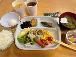 おでん。とは珍しい ごはん、味噌汁をよそってくれる優しさ