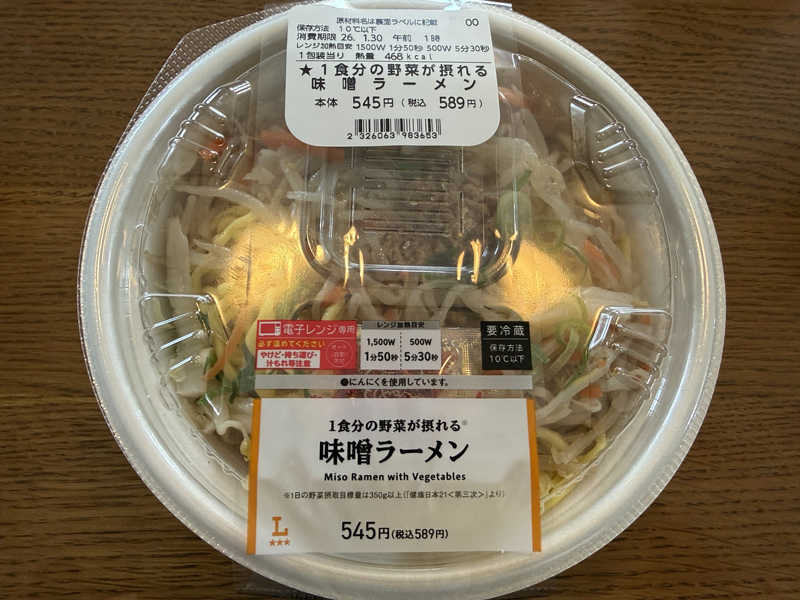 ローソンレンチン味噌ラーメン!普通に旨い😋最近1日分、〇食分の野菜の文字に弱い俺です😓