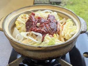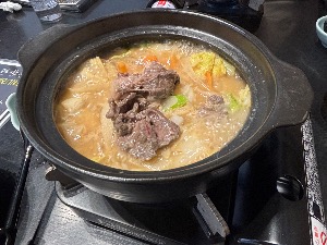熊出没を逆手に取った新メニュー🍲。酒粕のような味噌スープと熊肉の相性◎