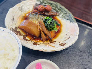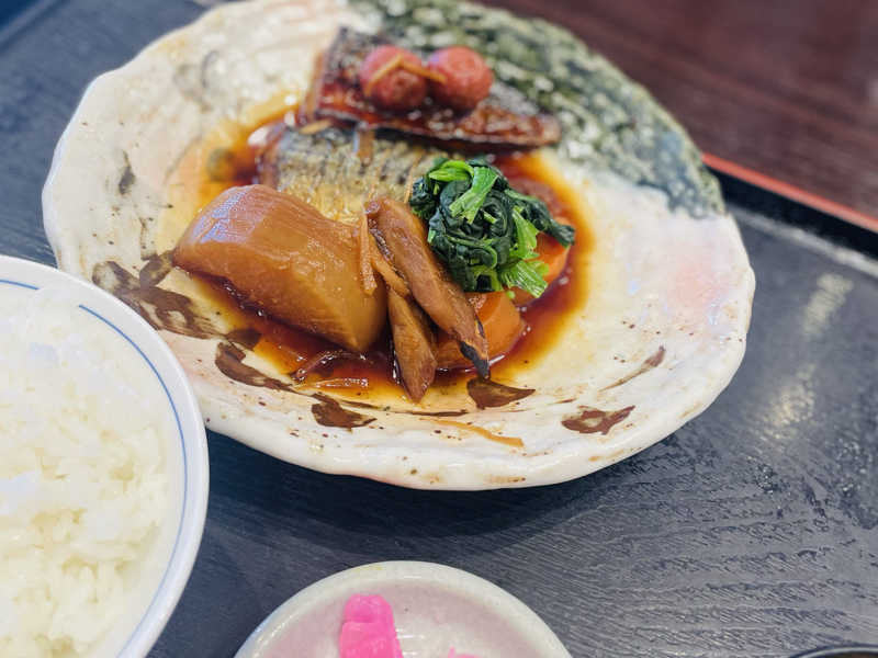 梅煮の鯖は珍しい!こってりとさっぱり!付け合わせの野菜も多くて嬉しい。