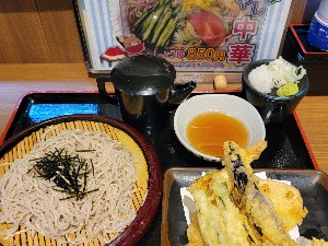 大盛りで注文❗😁 お昼はうどん、夜はざるそば😋 キスとハゼの天ぷら旨かったです💡🐟