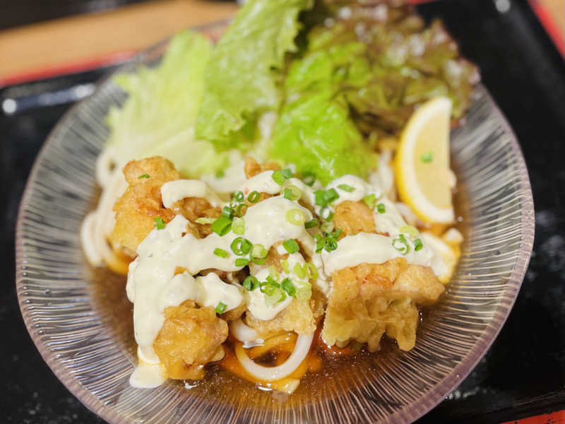 熱くてこってりなとり天と、冷たくてさっぱりなうどん!最高だ!