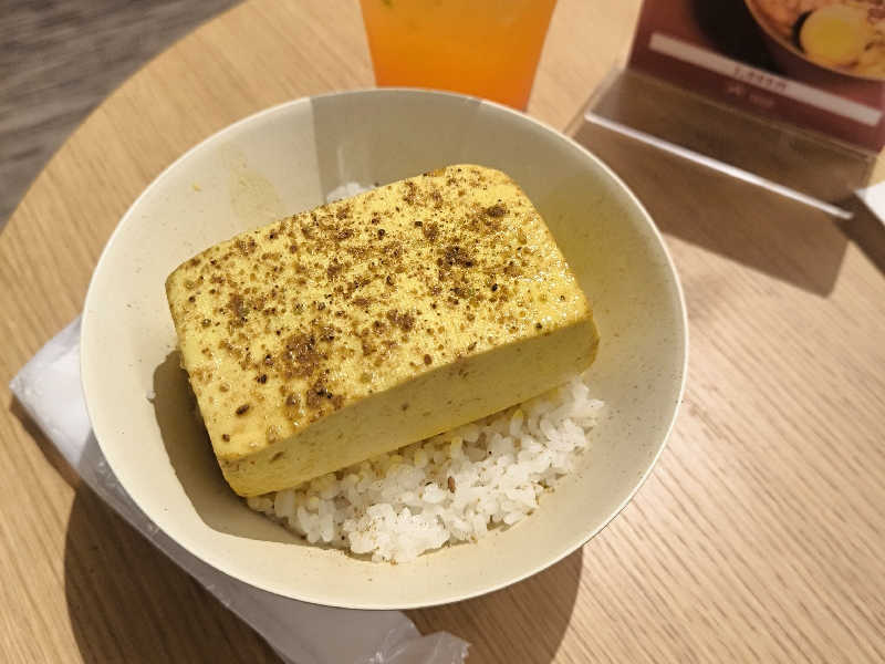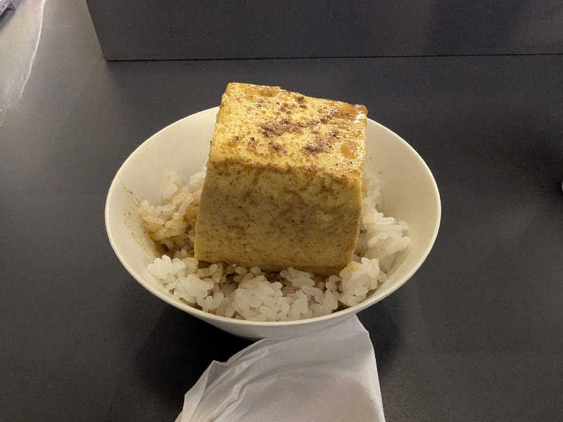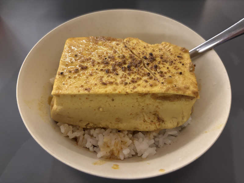 ご飯の上に豆腐のっけた豪快な料理! カレー味で、美味しかった!