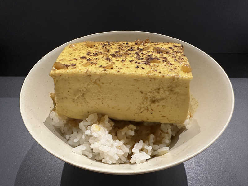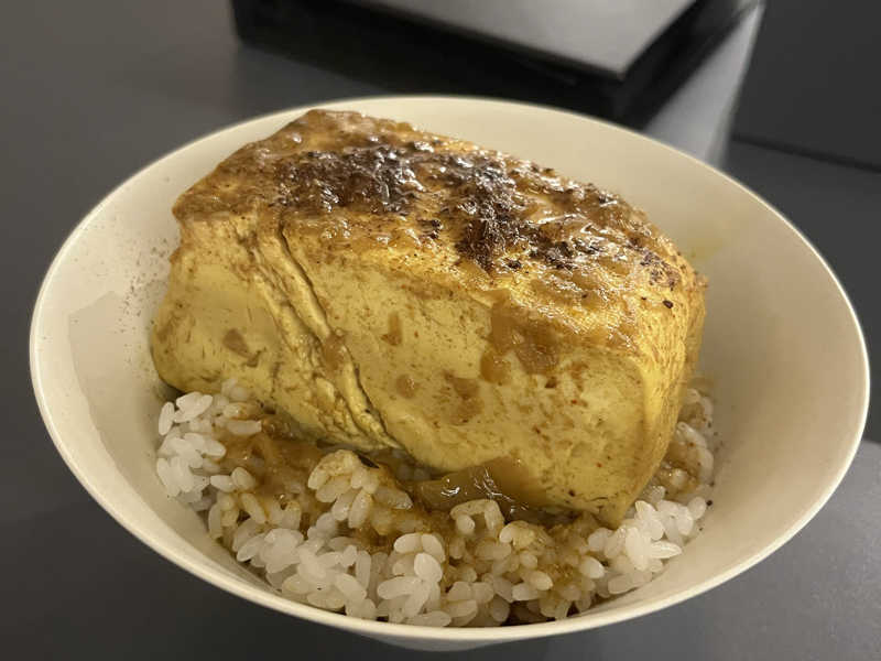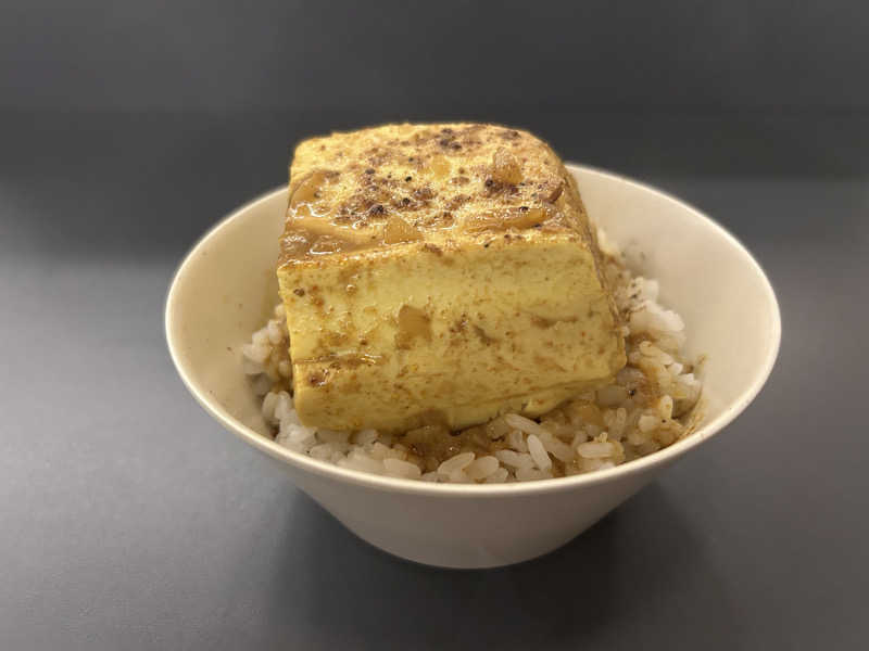 カレー風味の豆腐一丁がまるごと載ったご飯