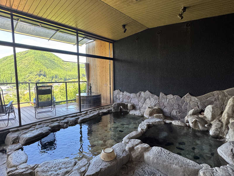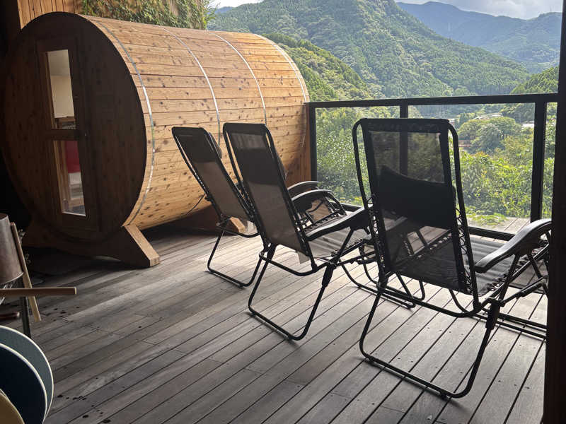 外気浴はインフィニティチェアーが4台ありそちらで。さすがの展望に加え、今は桜が満開!いい感じの涼しさでベストですね。