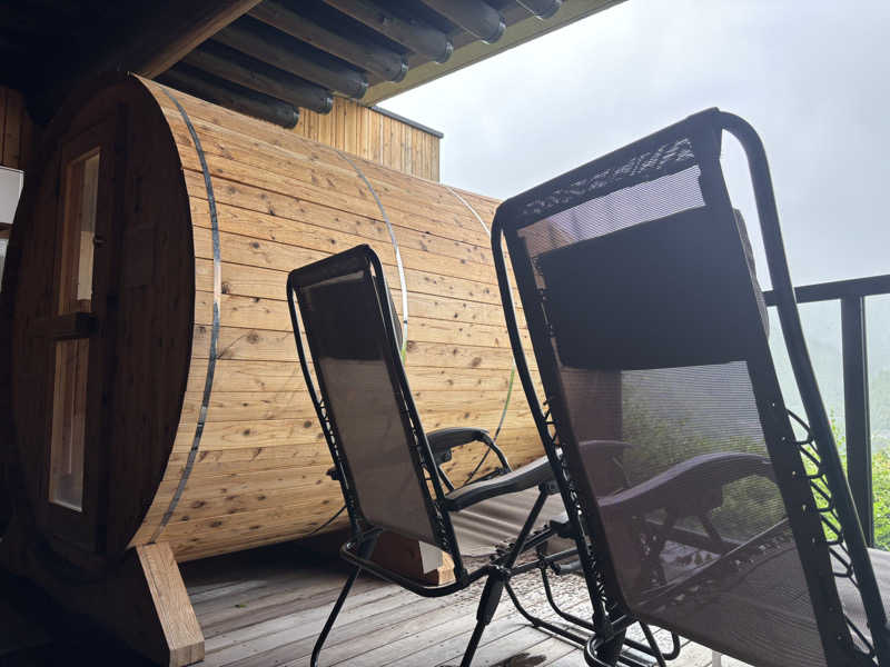 後で他の人がロウリュウしてるのを外から見たら、結構な量の蒸気が屋根の隙間から漏れ出て白い煙になってる💨