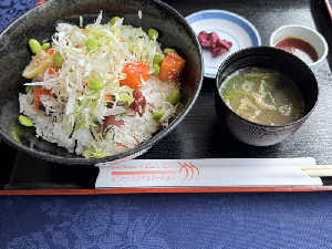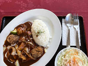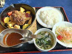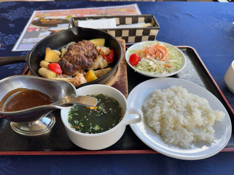 はまなす牛のメンチ2つも乗っていてお野菜ゴロンで美味しい😋