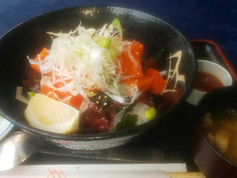 8月限定9/2まで。枝豆秒でなくなる、サーモンが厚いぶつ切り。旨辛タレにレモン、新たまシャキシャキ。