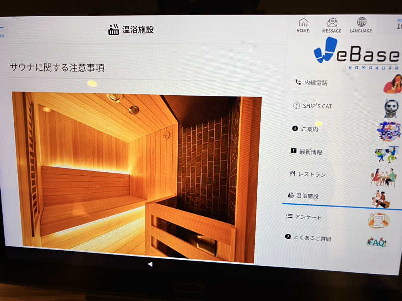 サウナは夜、朝と8分を2セットずつ実施。