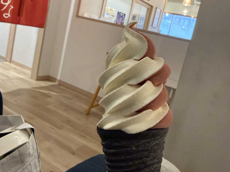 めちゃウマ♥️いちごがジェラートっぽくてソフトクリームとの食感の違いが楽しめました!コーンもパリパリ