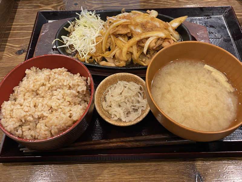 魚がウリの店で、血迷って肉にしちゃいました😅玄米に変更しましたが、全般的に美味しかったです🐓
