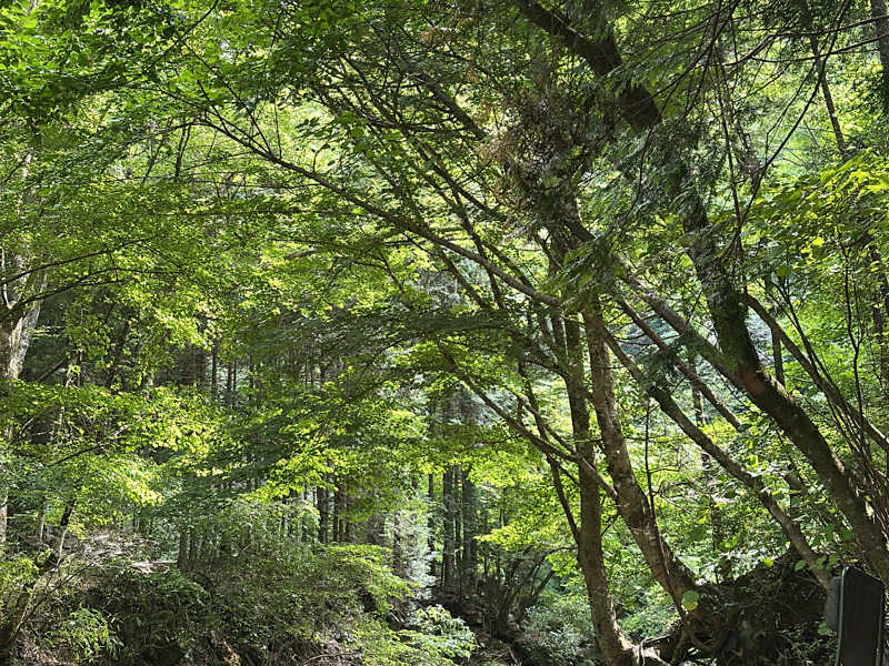 休憩は河原の大きな岩の上に大の字に寝て滝の音を聞きながら、大きな木々の枝葉でできた緑の屋根を見上げながらしばらく放心状態でした。