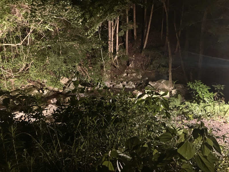 森の中にあるため暗いかと思いましたが、一面がライトアップされており、幻想的でとてもリラックスできました。