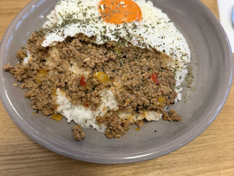 辛くなく食べやすかった。 目玉焼きが乗ってたら喜ぶ奴なので、もちろん喜びました🍳