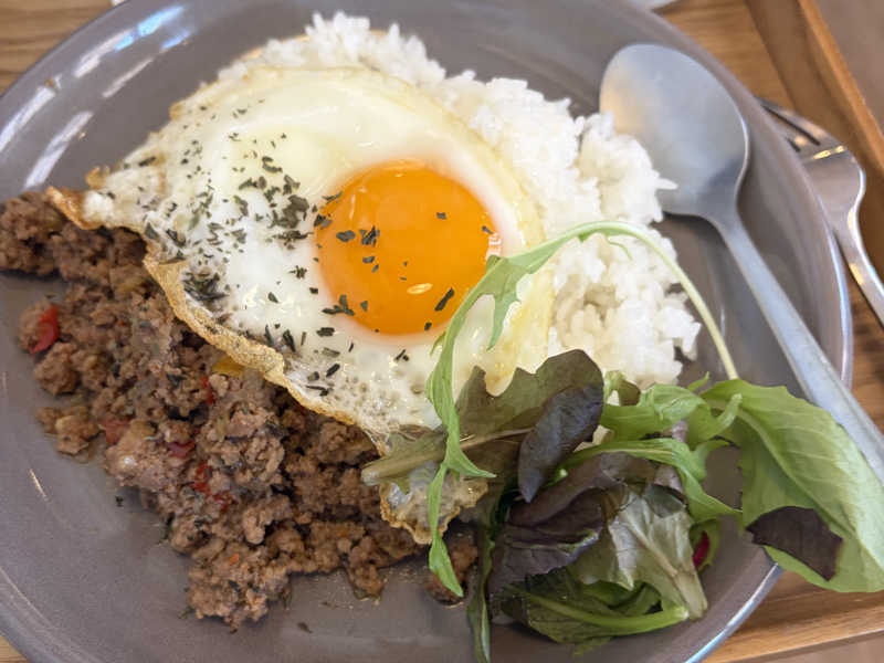 好みの味!サウナ施設だからか少しお肉の味は濃いめ、ガパオライスをおかずにもうひとつライスが必要🍚